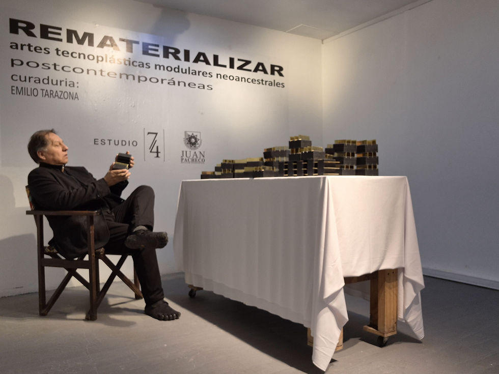 Soy un escultor postcontemporáneo que evolucionó desde la escultura moderna de las artes plásticas hacia la escultura modular neoancestral postcontemporánea de las artes tecnoplásticas. En ese sentido, la rematerialización, como una acción teórica, implica el tránsito desde el punto de argumento siguiendo a Wittgenstein y Kosuth para probar la existencia de la idea hacia su objetualización. Este proceso busca superar los paradigmas del conceptualismo clásico mediante lo que denomino “artes tecnoplásticas”, en las cuales el módulo emerge como unidad estructural de la obra. En este marco, la obra deja de concebirse como objeto cerrado para constituirse como un sistema espacial modular. La forma se configura a partir de módulos compuestos por partes entrantes y salientes que, al ensamblarse, generan un espacio dinámico. Dicho espacio deviene en la obra misma, caracterizándose por su capacidad de ser modificado de manera indeterminada por la interacción del público. Estableciendo un paralelo con la escultura modular moderna de Edgar Negret, se observa que, mientras esta última se define como un objeto de composición cerrada, la escultura modular postcontemporánea, tal y como la propongo, se configura como un espacio de composición abierta, susceptible de recomposición constante por parte del espectador, quien asume un rol activo en la construcción del sentido.